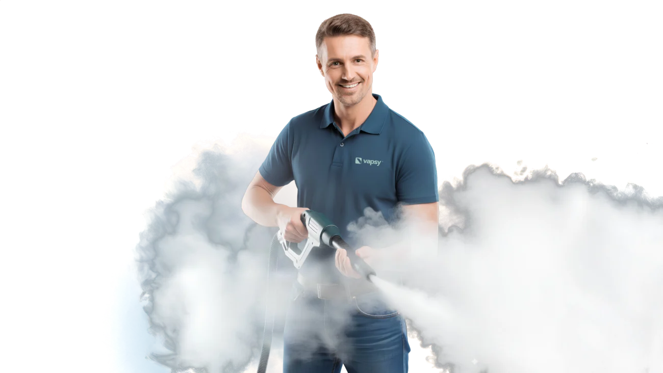 VapsyWash es nuestro servicio de limpieza a vapor diseñado para quienes buscan algo más que un simple lavado. Trabajamos con vapor seco a alta presión para eliminar suciedad, bacterias y olores en profundidad, sin dañar superficies ni utilizar productos químicos agresivos.